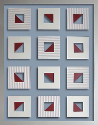 Our own project involved designing, creating and framing 200 unique embossed decorative pieces and then setting them into white “box-shaped” frames, to be dispersed throughout the bedrooms and the various common areas of the hotel.